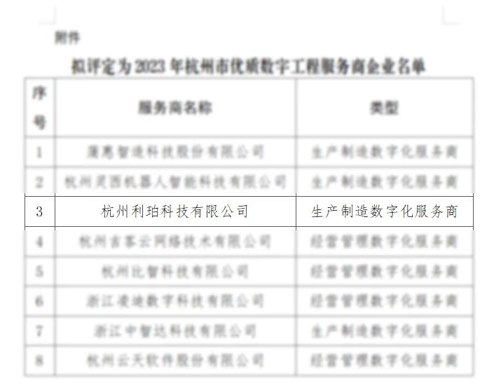 市經(jīng)信局組織開展了2023年杭州市優(yōu)質(zhì)數(shù)字工程服務(wù)商評(píng)定工作,杭州利珀科技有限公司獲評(píng)杭州市優(yōu)質(zhì)數(shù)字工程服務(wù)商企業(yè)。