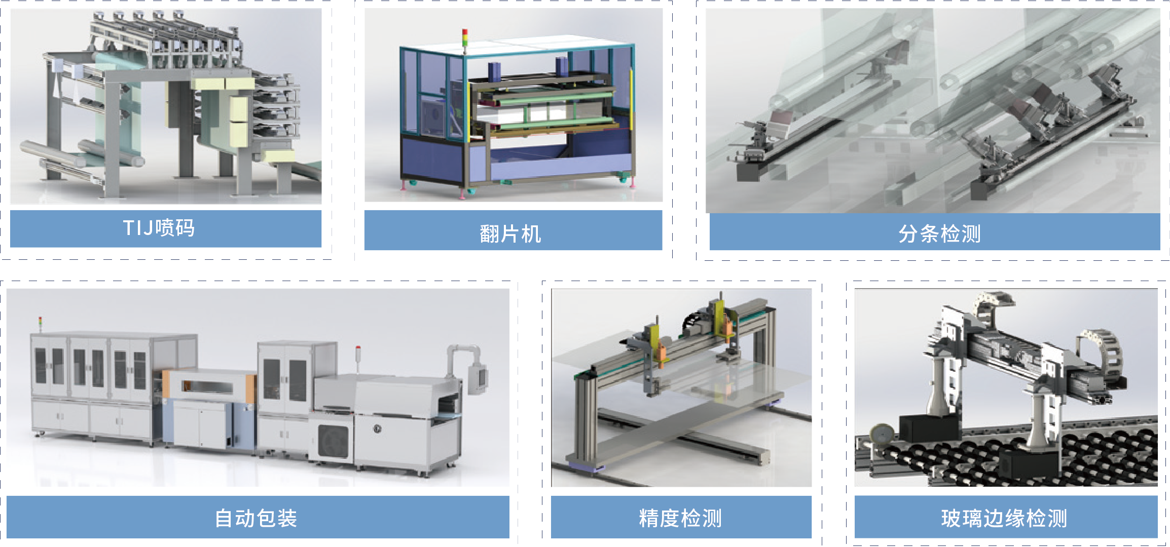 TIJ噴碼、翻片機(jī)、分條檢測(cè)、自動(dòng)包裝、精度檢測(cè)、玻璃邊緣檢測(cè)