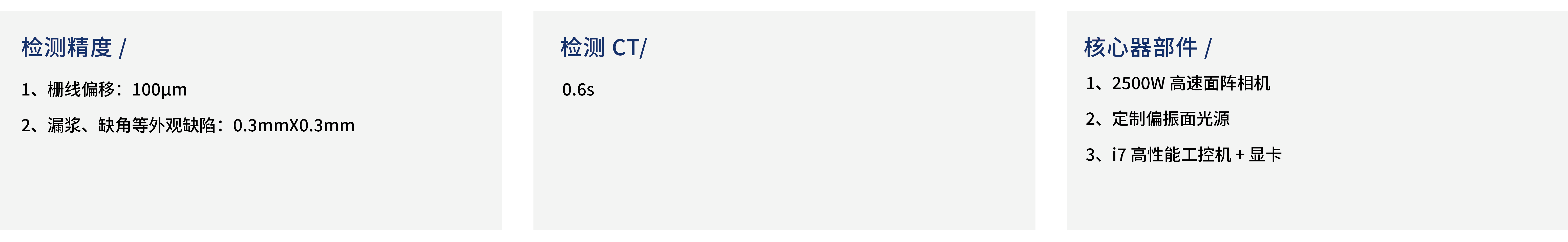 主要用于檢測晶硅電池片印刷工藝后的斷柵、印偏、線粗、背電場脫落、背電極印偏、漏漿等問題